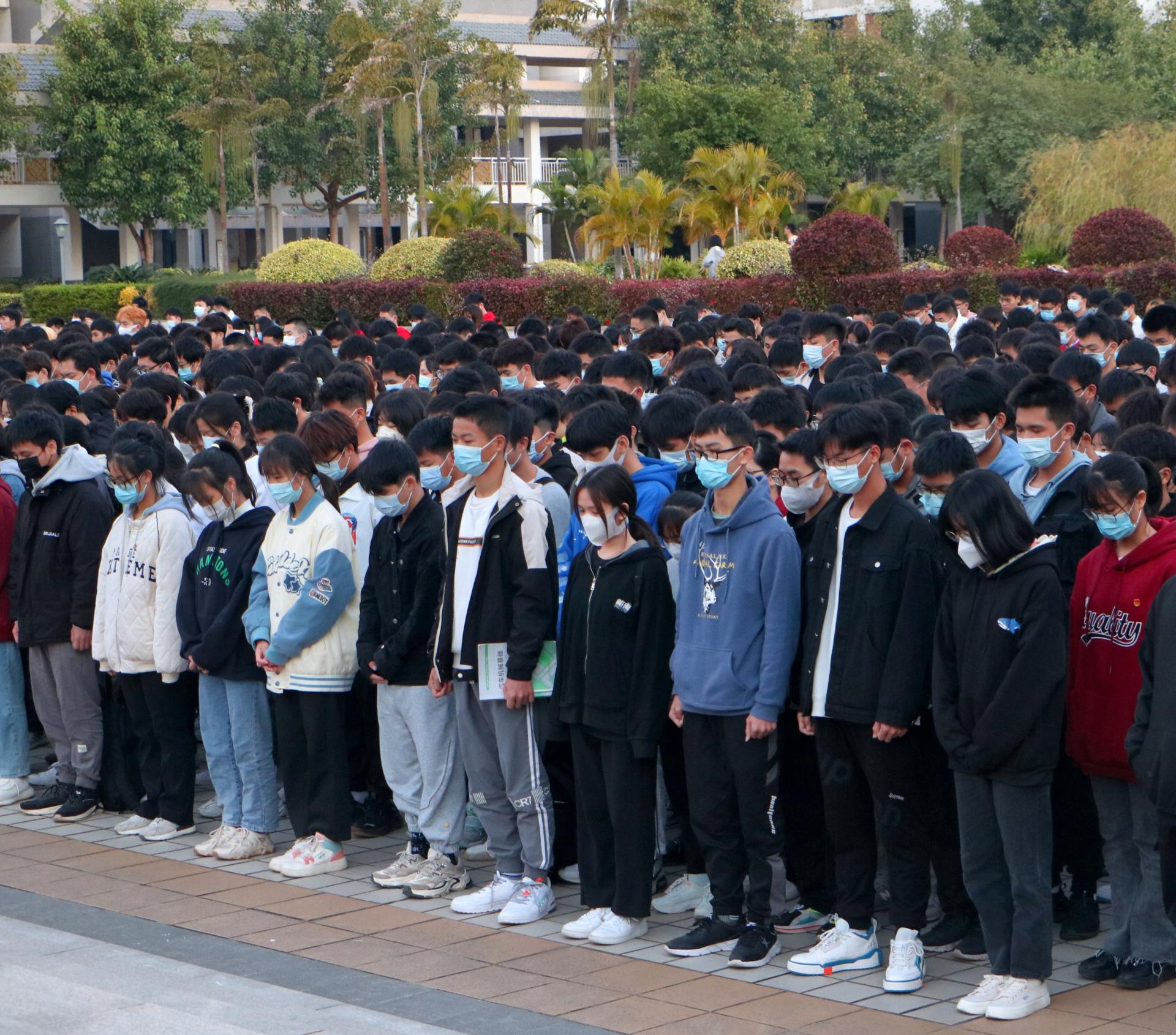 最后,全体师生向南京大屠杀死难者致哀,为30万遇难者祈福。