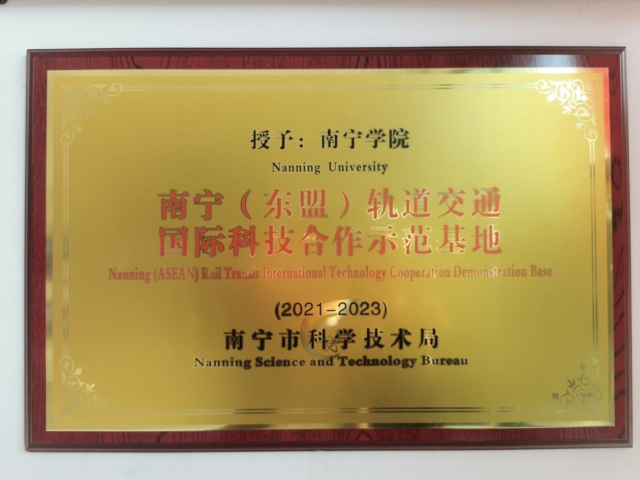 南宁(东盟)轨道交通国际科技合作示范基地荣获南宁市科技局国际科技合作示范基地牌匾