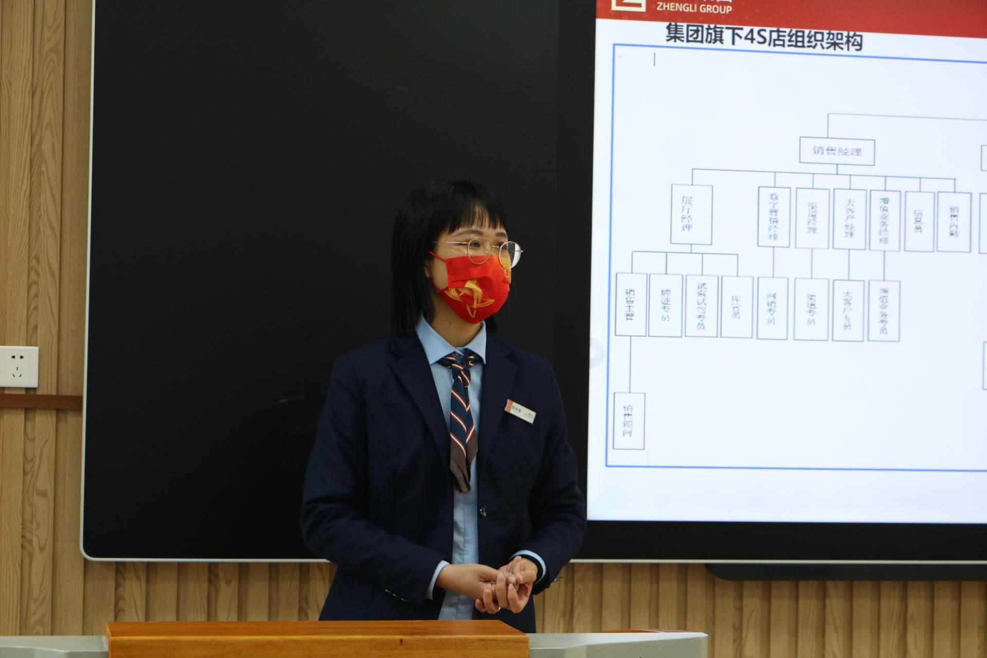 下午,广西正励投资集团有限公司负责人欧叶凤经理介绍其公司成立于2019年,公司的主营业务有吉利、领克、比亚迪登多家4s店,集团业务遍布南宁、防城港、百色等。还讲解了公司发展历程、企业文化、公司员工人数、员工学历情况,并分享公司2021年获得的荣誉,着重强调公司秉承人人平等的理念,只要自己不放弃自己,公司就不会放弃任何一个人。