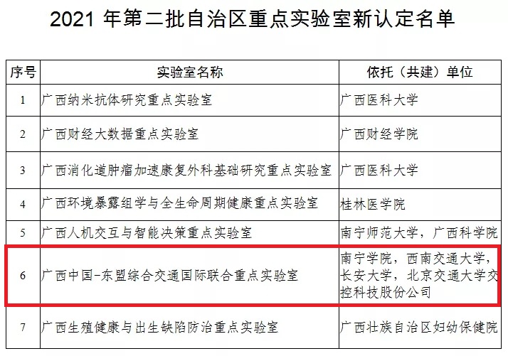 【喜报】广西中国-东盟综合交通国际联合重点实验室获批广西重点实验室