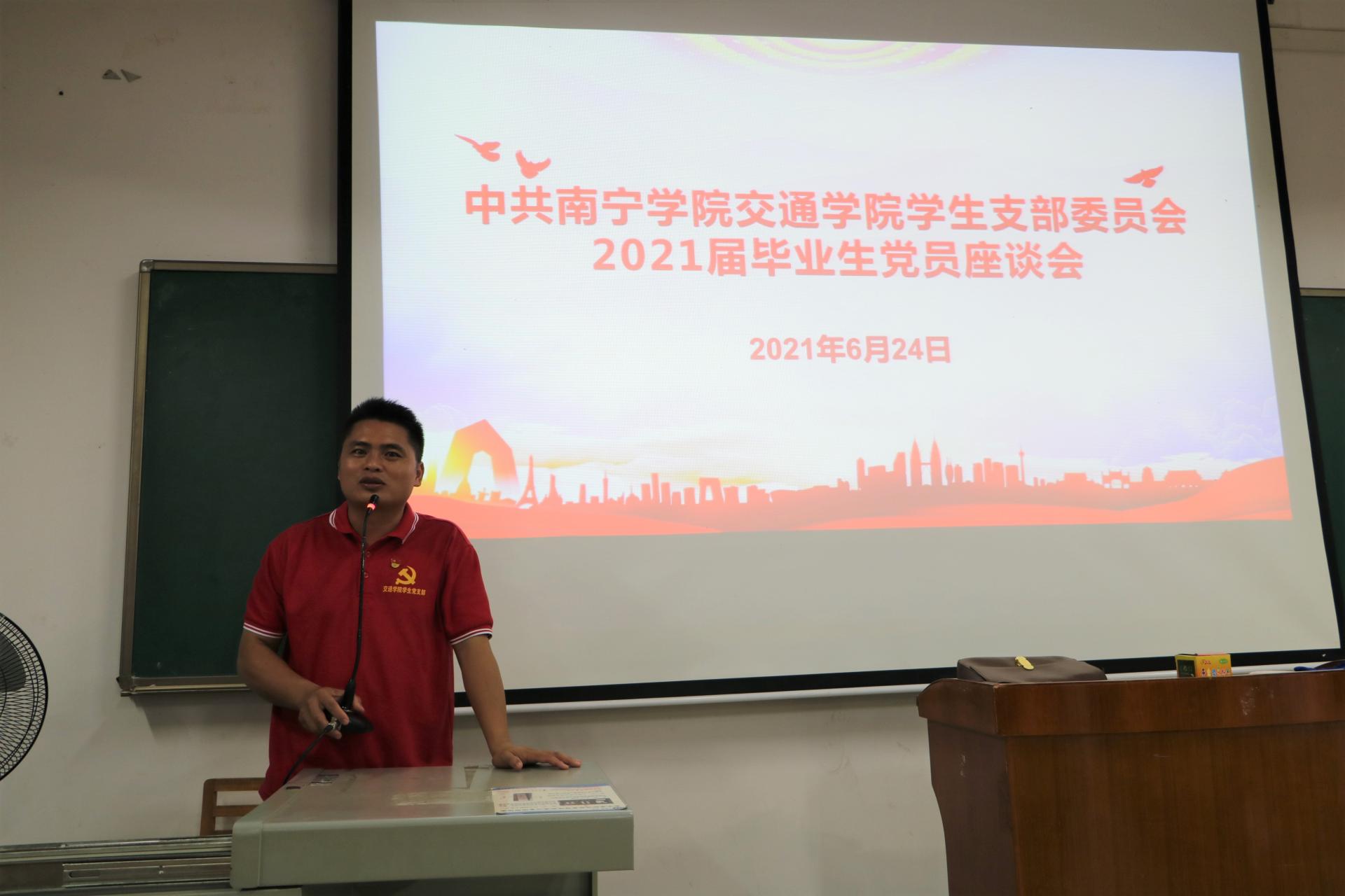 在会议上,交通学院学生党支部书记蔡旭首先祝贺2021届毕业生党员们顺利完成学业,同时肯定了毕业生党员们在学校建设发展方面做出的贡献,并且叮嘱他们要成为祖国强大一代的中坚力量。紧接,交通学院学生党支部组织委员袁丽丽对毕业生党员们提出了几点嘱咐和要求。首先,不管走到哪里,都不要忘记自己是党员,做人做事要符合党员身份;其次,步入社会之后要慎言笃行,做有诚信、会思考的人。