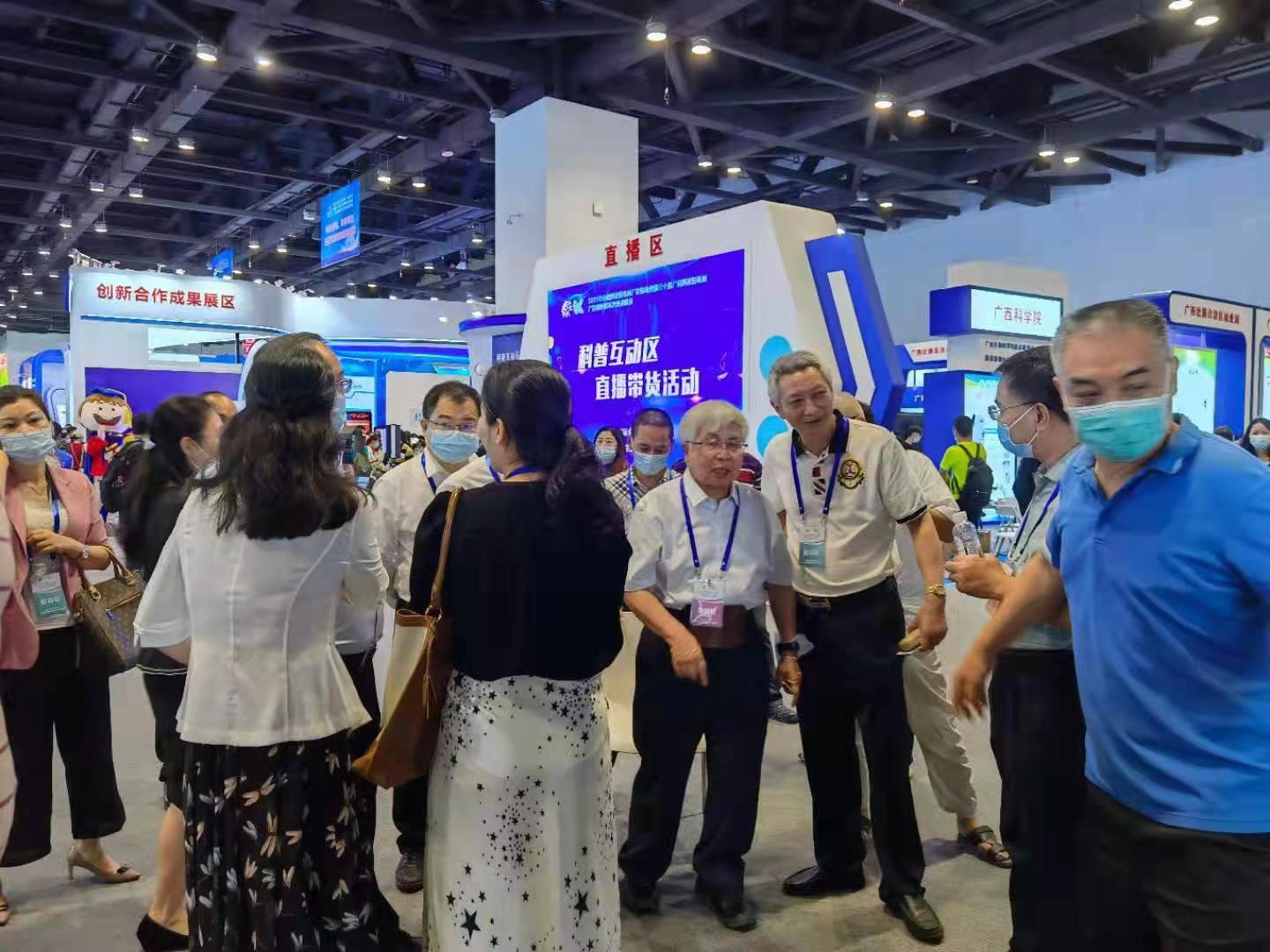 广西壮族自治区党委副书记刘小明、自治区政府副主席费志荣、广西科技厅厅长曹坤华、到展位指导工作