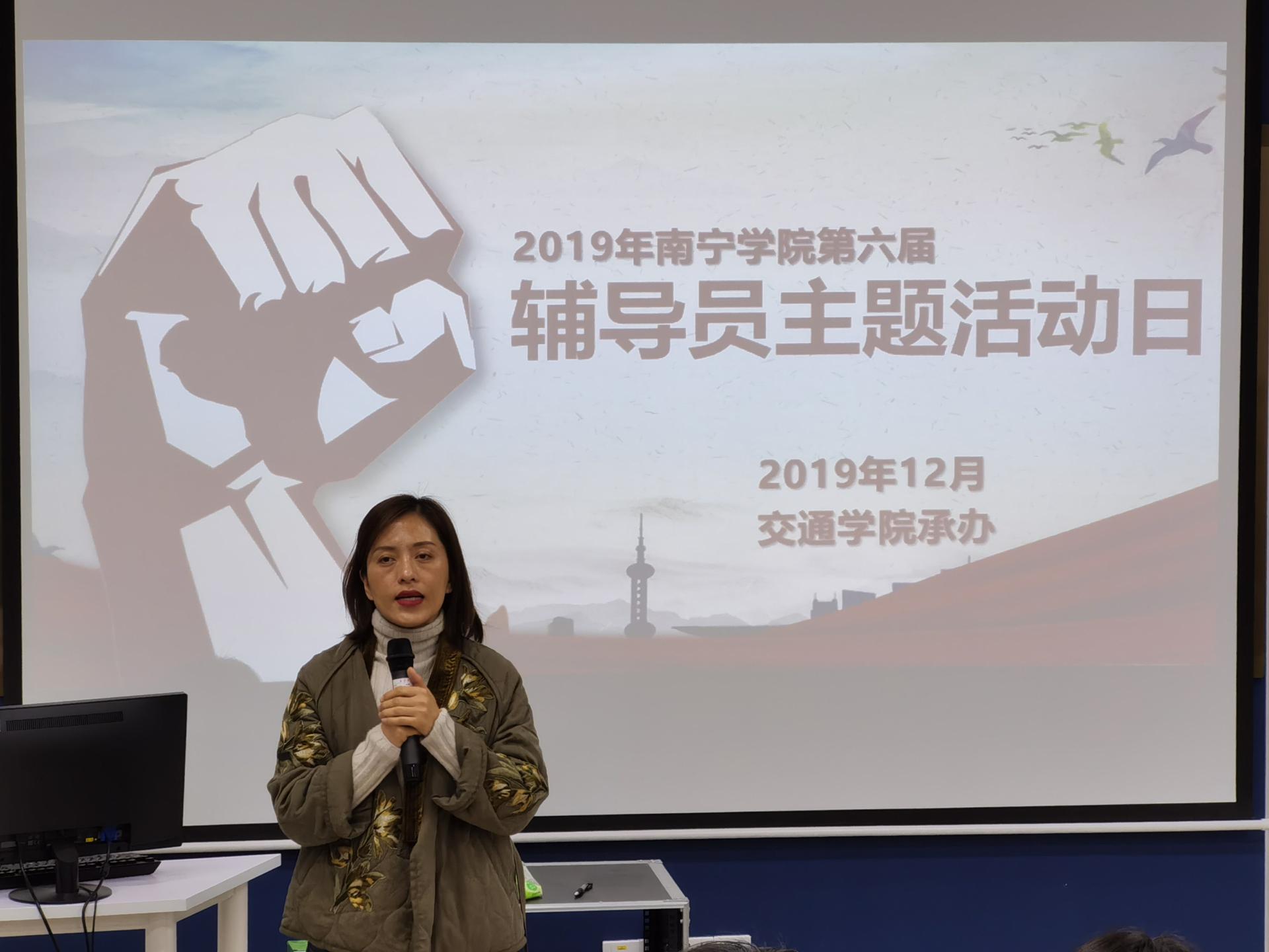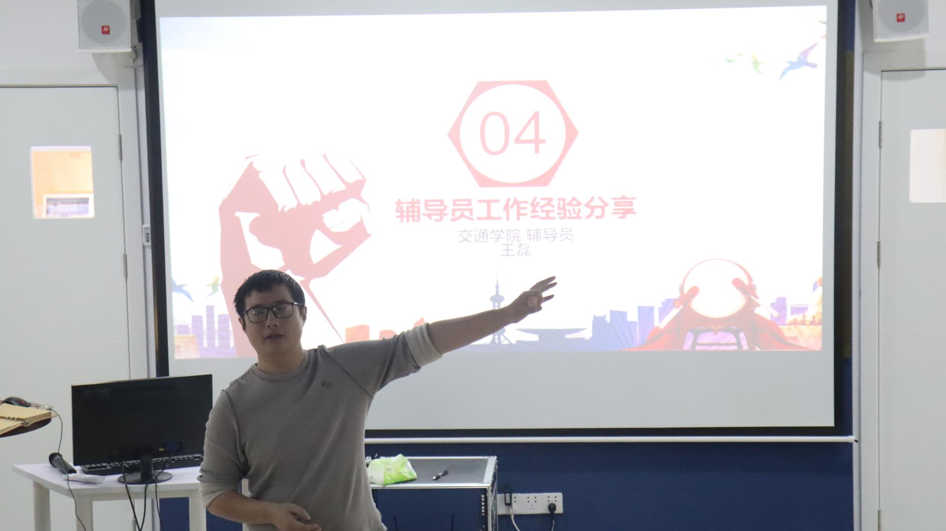 本次辅导员活动日由交通学院辅导员袁丽丽主持,活动主要以“辅导员素质能力大赛经验分享”、“学生工作管理经验分享”研讨会和“爱国影视观赏”的形式举行。