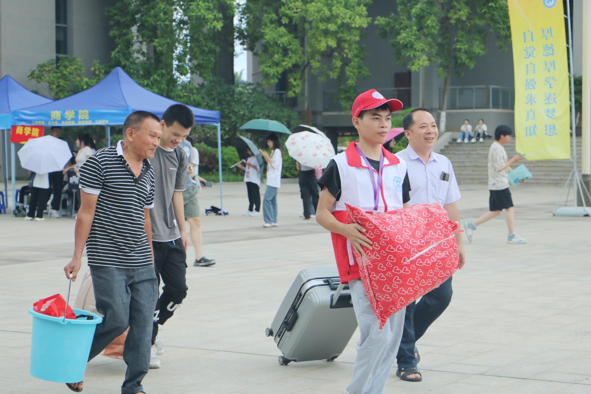 “家长您辛苦了,请喝杯水”、“把行李交给我吧”、“来,我送你们去宿舍”,新生报到现场,学生志愿者们分工明确,他们热情饱满、笑容亲切,为每一位新生和家长提供周到的服务,用“一对一”的爱心志愿服务为新生和家长搭建一条温馨的迎新通道。