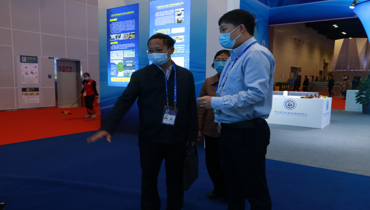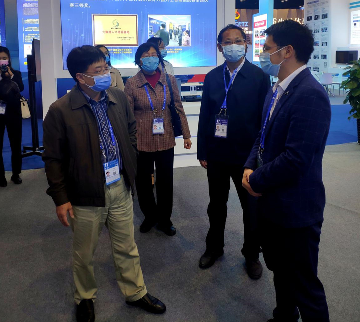 11月27日下午,学校党委书记刘彪,财务处总监韦典,国交处处长韦平,交通学院院长陈红保等一行8人到会展中心现场检查指导中国-东盟综合交通国际联合实验室展出工作。在展区前,西南交通大学科研院产学研合作办副主任姬少峰介绍了参展情况,参展商北京大象科技有限公司、北京奥恒达电气设备有限公司、广西北斗天宇航天科技有限公司、福建汇桥智成工程技术有限公司、西南交通大学代表对现场各项工作及参展产品的创新性内容进行详细介绍。