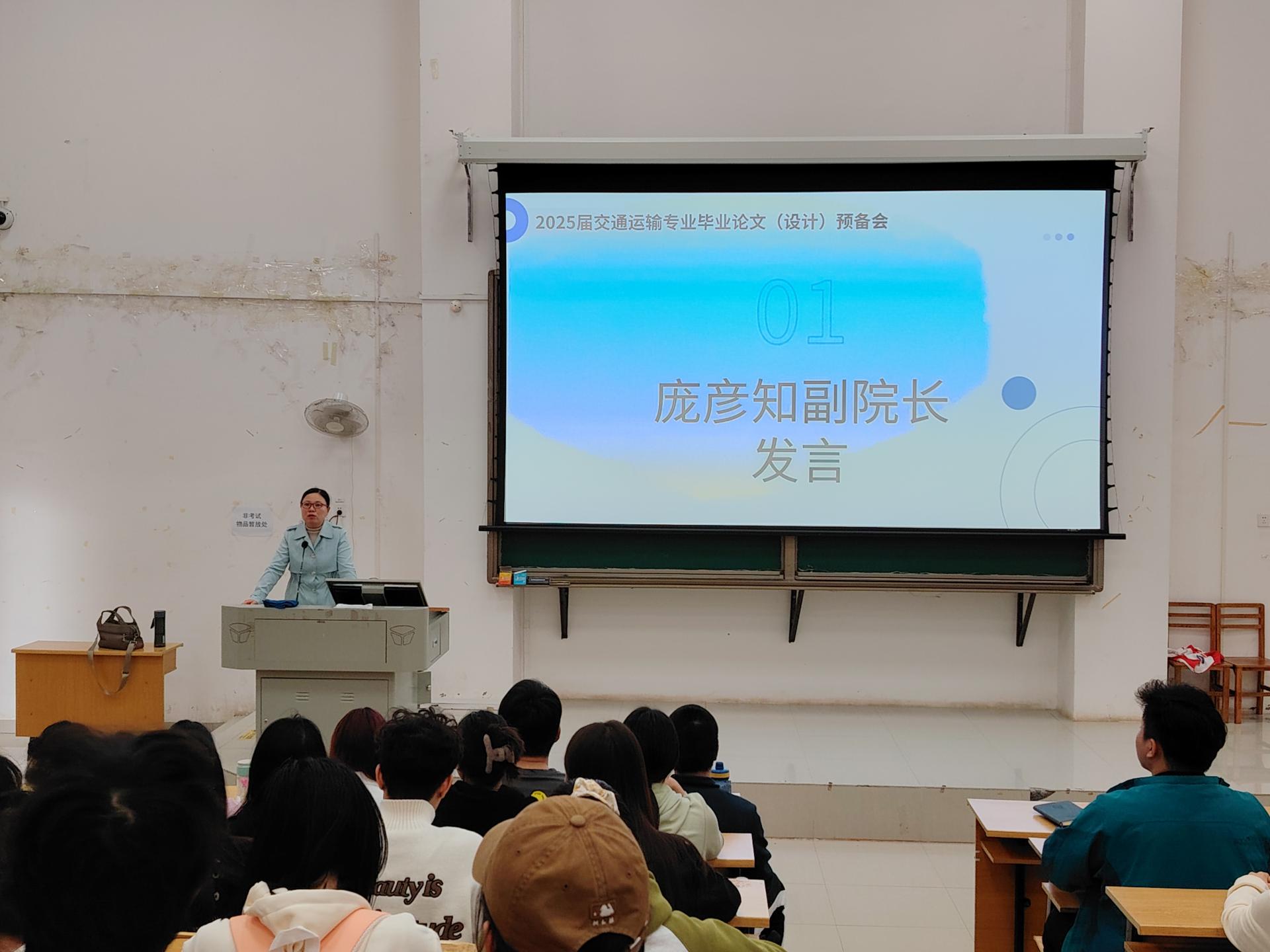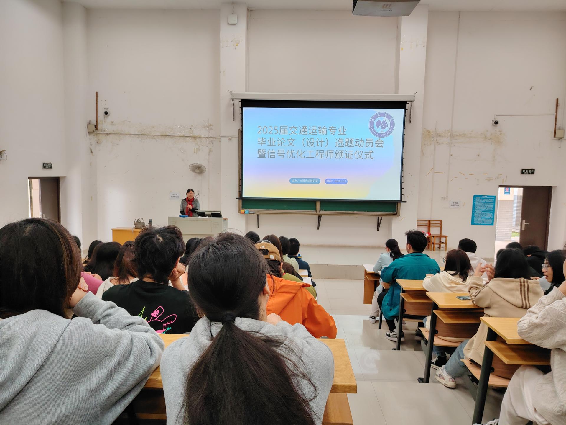毕业论文(设计)是本科人才培养方案的重要环节,为使2025届毕业生提早了解毕业论文(设计)的相关要求并强调各类共性问题,并做好后续选题工作,3月12日下午,交通运输教研室组织2025届共250名同学在敷文园F104召开本科毕业论文(设计)选题动员会。会议由交通运输教研室主任陈燕老师主持,庞彦知副院长到场指导,交通运输教研室全体教师和交通运输专业2025届共250名同学参加。