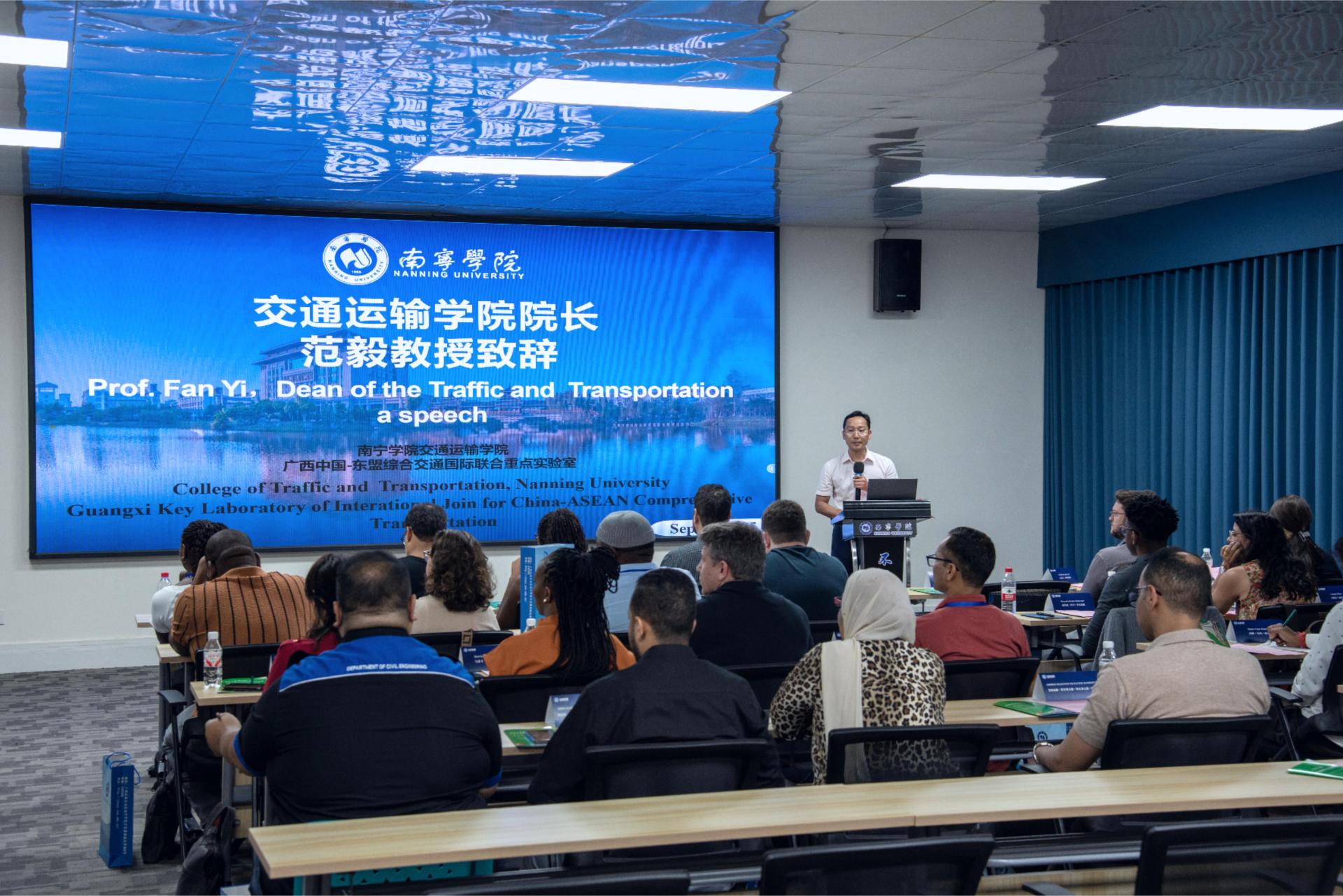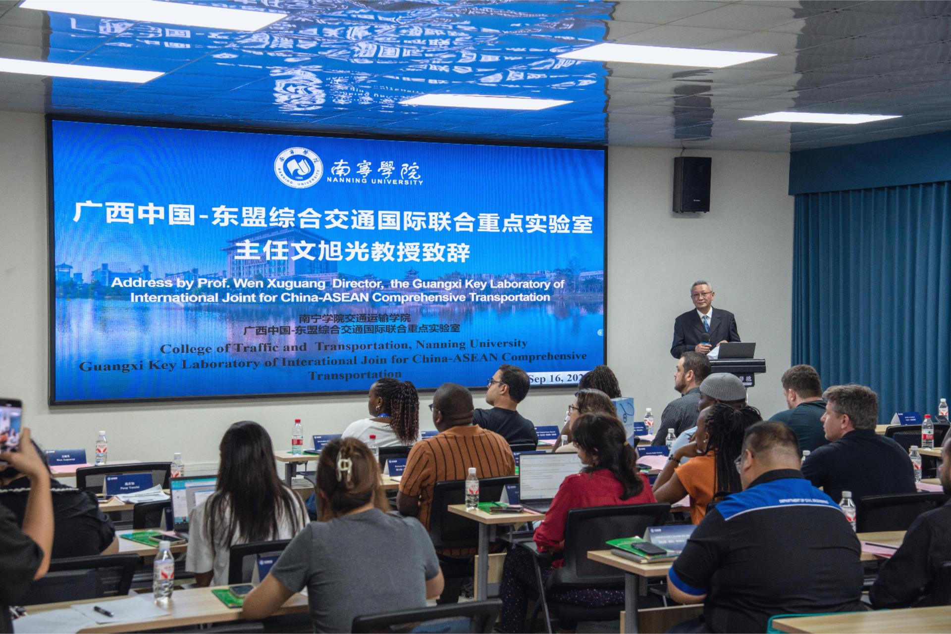 9月16日上午,研修班在南宁学院活动中心202开启专题交流,以研修为桥,深化中国与沿线国家交通技术协作。广西中国-东盟综合交通国际联合重点实验室主任文旭光教授致欢迎辞,对远道而来的各国学员表示热烈欢迎。南宁学院交通运输学院党委书记、院长范毅教授发言强调了广西作为中国面向东盟开放前沿的区位优势,以及本次研修班对于促进区域经济走廊建设的重要意义。