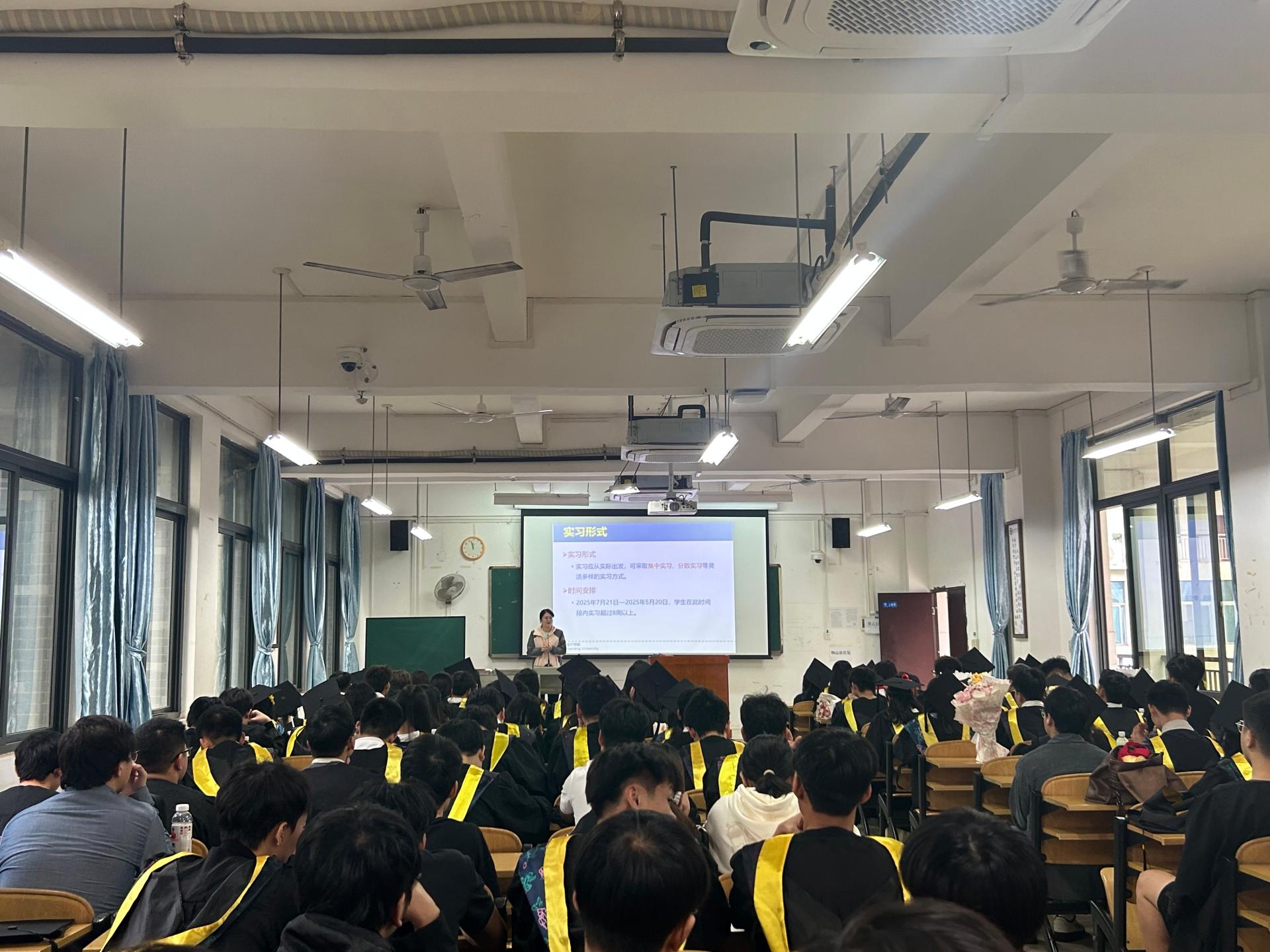 会上,盘老师主要围绕实习安排、过程管理、安全责任、成果考核等方面展开详细说明,重点介绍了校友邦实习管理平台的相关设置,指出本届实习安排任务,可根据实际情况选择集中实习或分散实习,并鼓励同学们保持积极乐观心态,合理规划好实习时间。