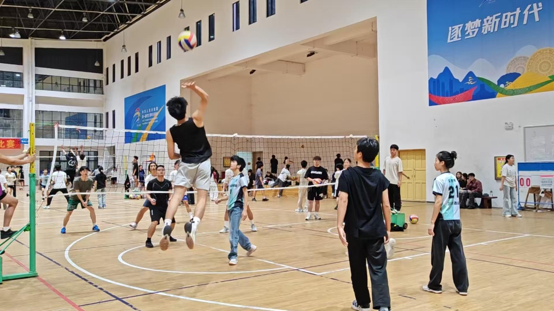 淘汰赛阶段,竞争更趋激烈。面对实力相当的对手,各队伍沉着应战,灵活调整战术。有的队伍凭借强势发球掌握主动权,有的依靠严密防守筑牢防线,还有的以默契配合打出精妙战术组合。半决赛中,2024级物流工程2班与“重在掺和”队的对决尤为精彩,双方比分交替上升,第二场比分追至21:23,最终“重在掺和”队凭借关键一球险胜晋级。赛场上,队员们不畏强手、顽强拼搏,充分展现了交运学子昂扬向上的精神风貌;场下,啦啦队员们热情助威,参赛队伍相互鼓劲,彰显了“友谊第一、比赛第二”的体育精神。