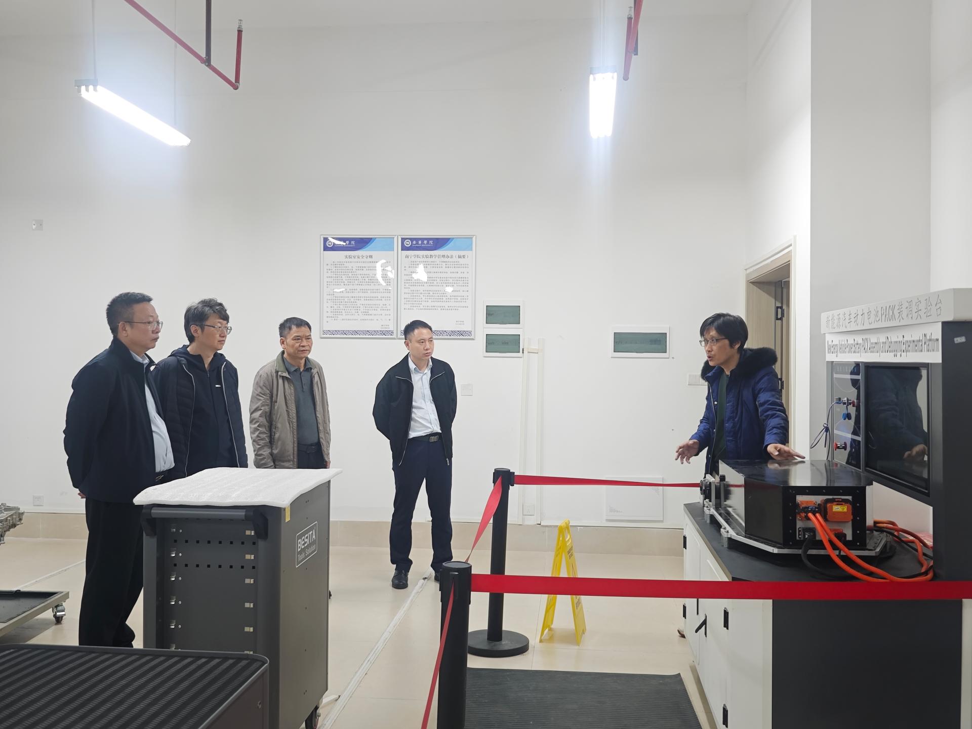 在交通运输学院领导的陪同下,广西兰科一行参观了学院的教学实验室、科研平台及学生竞赛创新工作室,深入了解学院在新能源汽车领域的教学成果与科研进展。期间,双方与即将赴广西兰科开展实习的交通运输学院学生覃祚钦进行了亲切交流,鼓励其将理论与实践紧密结合,为行业创新发展贡献力量。