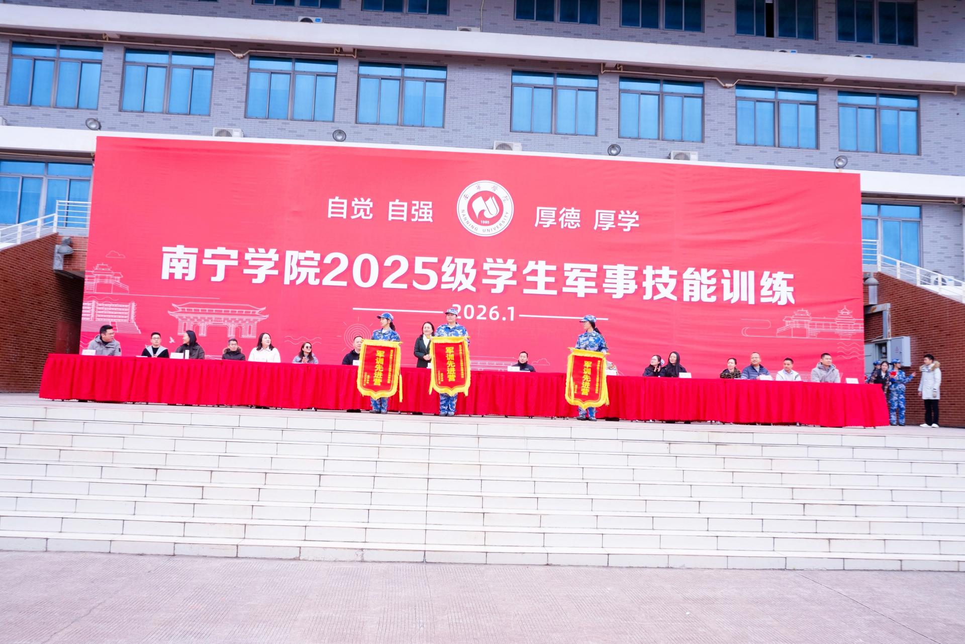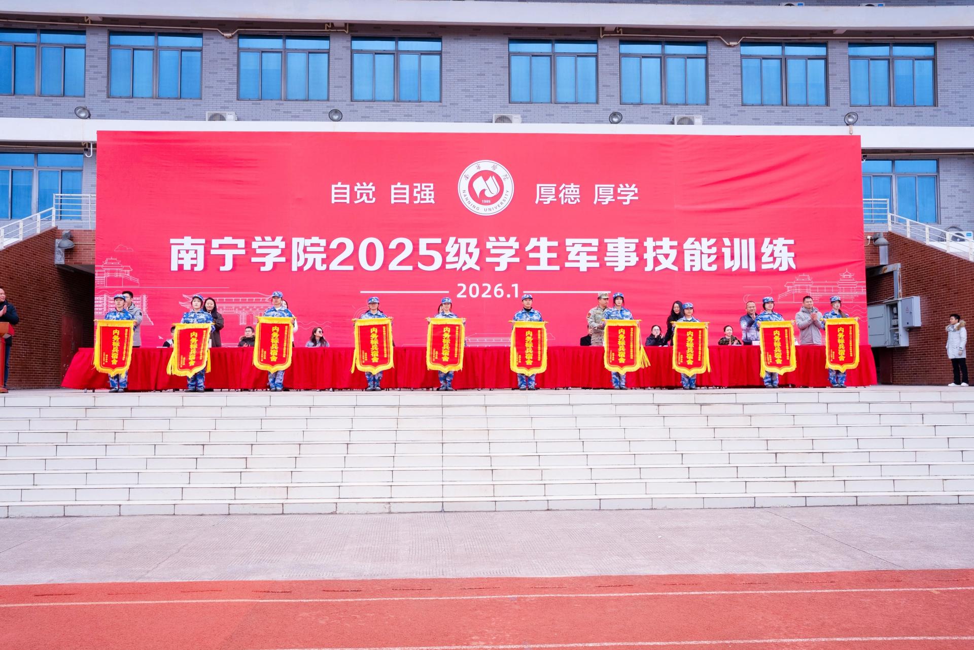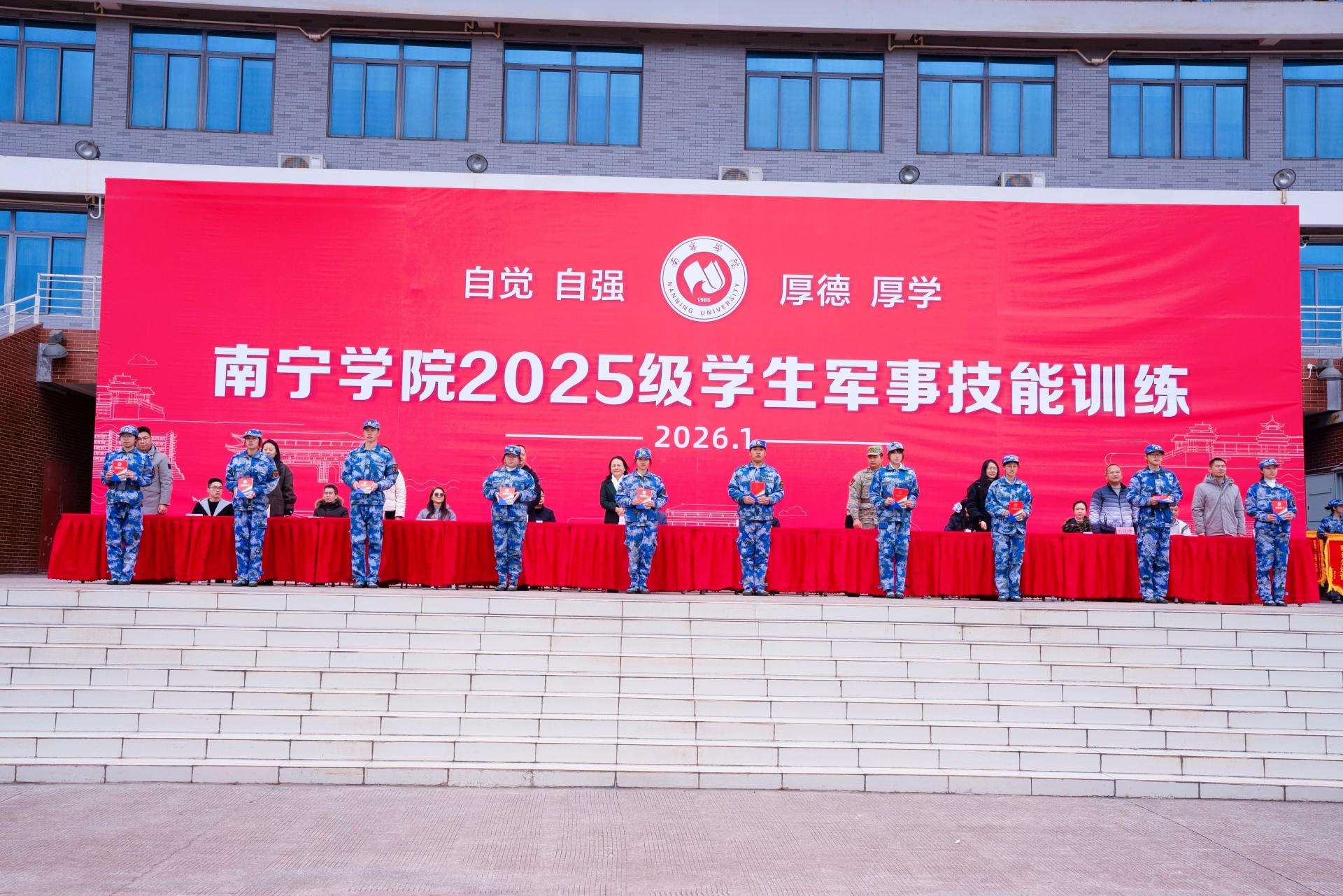 2026年1月23日,南宁学院2025级新生军训总结表彰大会顺利举行。经过为期两周的磨砺淬炼,交通运输学院学子以昂扬的姿态、过硬的作风、优异的表现圆满完成各项军训任务,成功获评校级“军训先进营”称号(全校仅有的3个)。同时,学院多名学子获评“军训内务标兵”“优秀学员”,蒋东霖老师获评全校“先进工作者”,学院全体参训师生以汗水诠释坚守,用行动交出了一份亮眼的青春答卷。