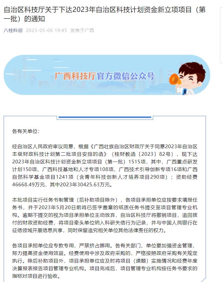 5月6日,根据《广西壮族自治区财政厅关于同意2023年自治区本级财政科技计划第二批项目安排的函》(桂财教函〔2023〕82号),广西自治区科技厅下达2023年自治区科技计划资金新立项项目(第一批),由南宁学院交通运输学院庞彦知副教授牵头联合西南交通大学申报的《广西交通新技术转移中心平台建设》荣获2023年度广西科技基地和人才专项国际国内科技合作服务平台建设项目立项。