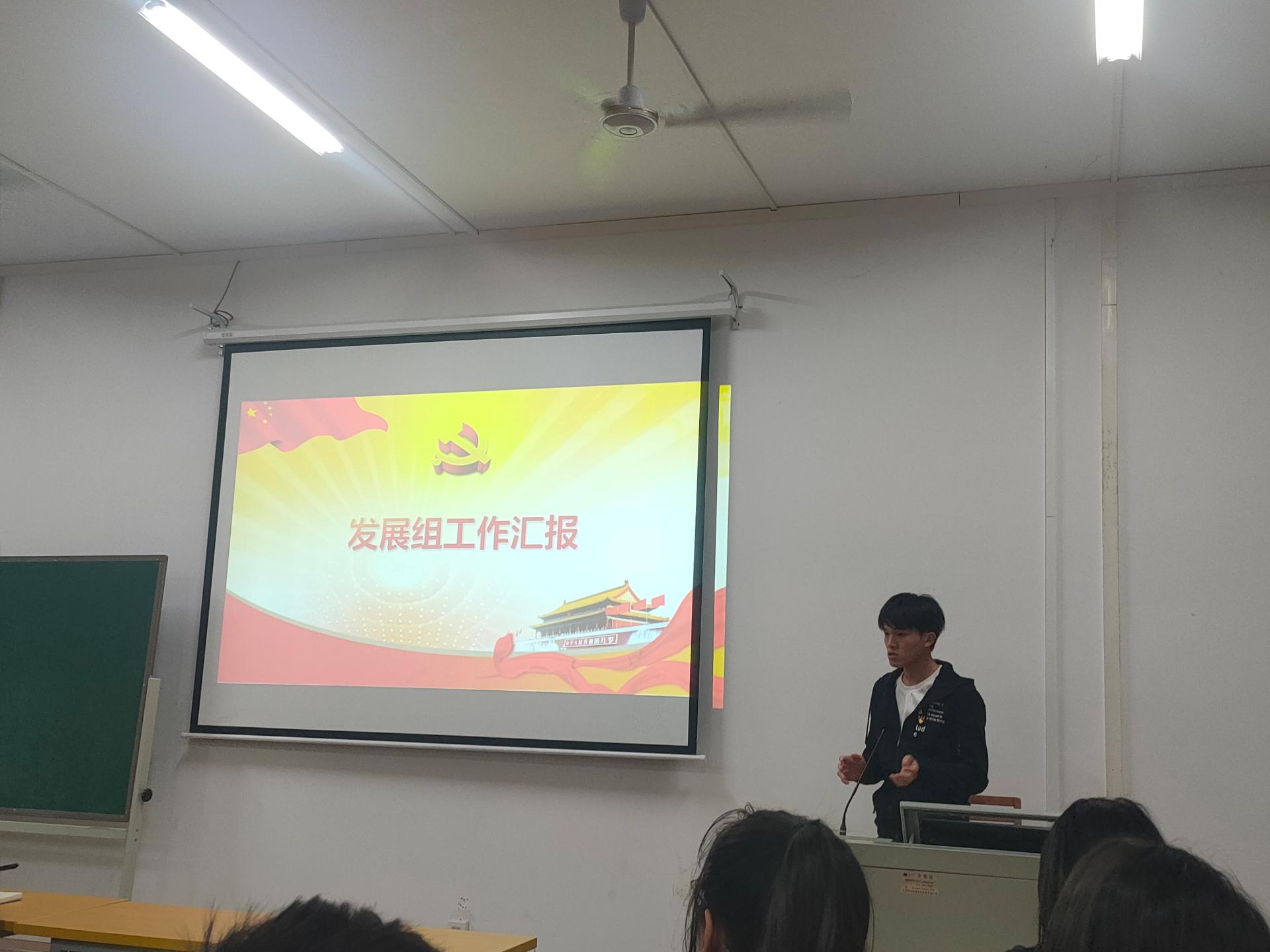 会上,曹夏丽同志详细说明了秘书组的工作职责范围,基于今年学校党建考核的复杂性,对年底台账整理必须要完整细致;李光磊同志运用图例,清晰展示发展组工作需要严格遵循的时间线;彭金同志着重强调了档案组目前最重要的工作是毕业生党组织关系转出和专升本新生党组织关系转入,以及作为第十期南宁学院业余党校的承办学院,档案组将全权负责本期业余党校的后勤工作,着力使其顺利开展;陆金旺同志介绍了转正组目前的负责的工作内容,尤其强调以后特别会注重党员联系岗的发展,避免出现下班党员感到没有党建参与感的现象;谭皓滢同志详细说明了宣传组负责的工作任务和工作人员分配,已完成的工作和未完成的工作依照顺序依次排列一目了然。其次,学生党支部各小组同志都以问题为导向,学思结合,深入寻找、解决实际问题。