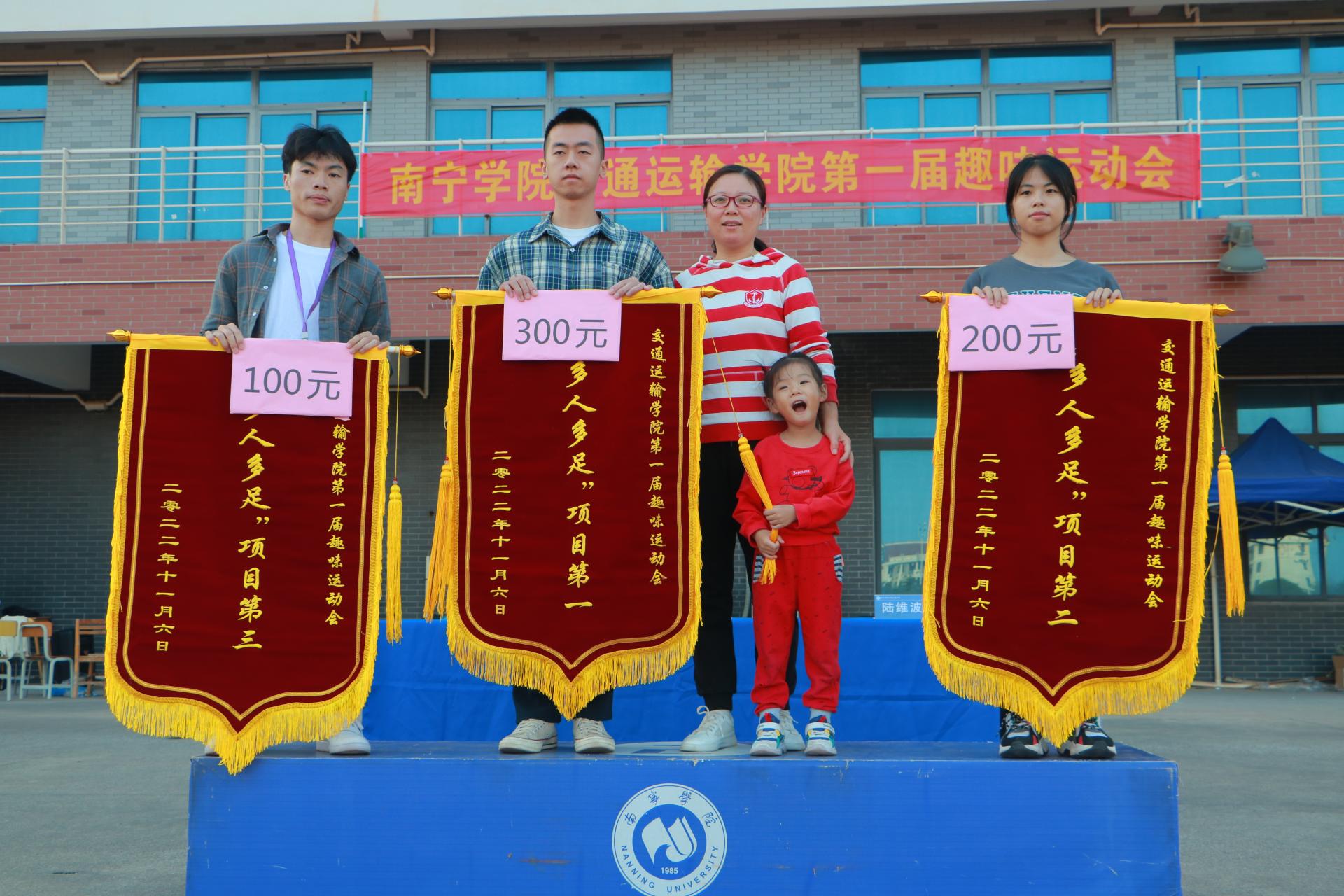2022年11月6日下午,伴随着比赛的最后一声哨声,交通运输学院首届趣味运动会完成了预定的各项赛事,圆满落下帷幕。在经过两日激烈的角逐,2021级现代物流管理班夺得本次趣味运动会的团体总分第一名,2021级交通运输2班、2022级交通运输2班分别获得团体总分第二、第三名。副院长庞彦知、学生科副科长陆维波、辅导员蒋东霖在颁奖典礼上分别为获奖班级进行颁奖。