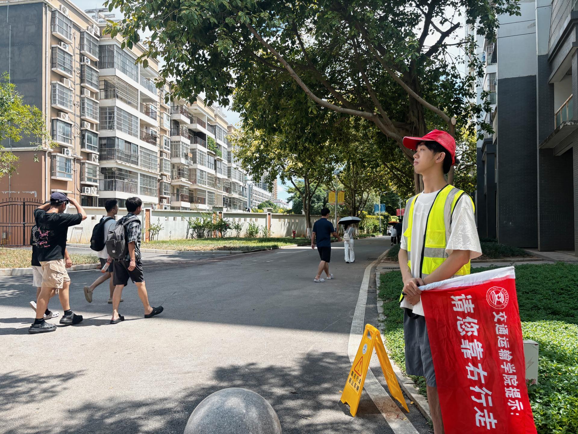 9月15日,南宁学院交通运输学院“畅行护卫队”以校园环路畅通为契机,在校园主干道、交叉口及人流密集区域成功开展了新学期的首次交通疏导活动。2025级新生队员们身着统一标识服装,有序引导车辆与行人,有效缓解了高峰时段的交通压力,展现出交通运输学院学子良好的精神风貌与实践能力。